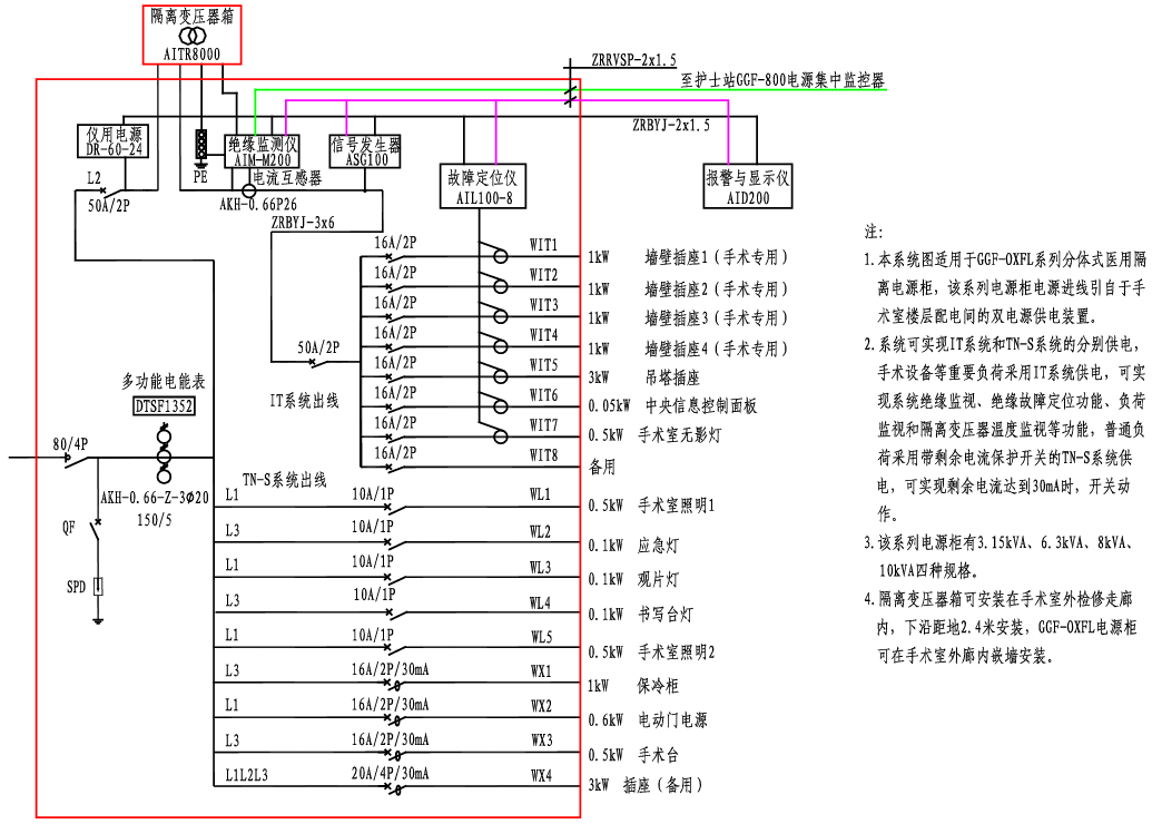 GGF-OXFL醫用隔離電源柜系統接線圖