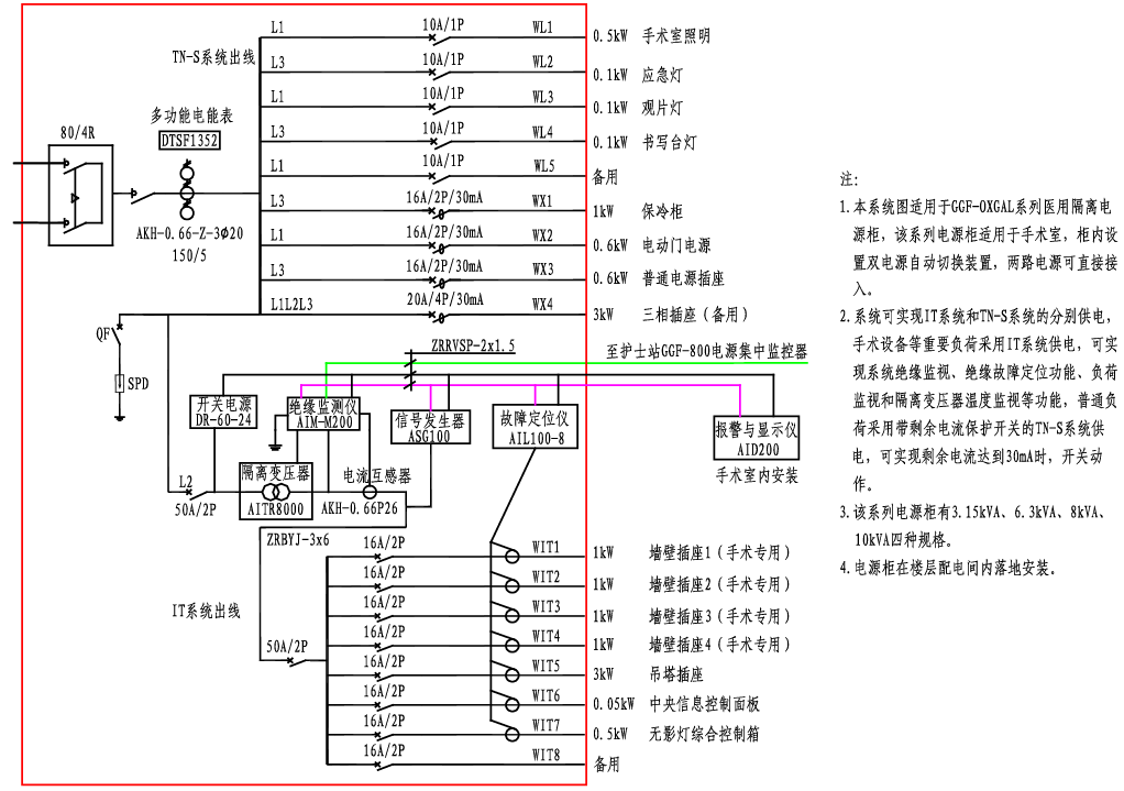 GGF-OXGAL醫用隔離電源柜系統接線圖