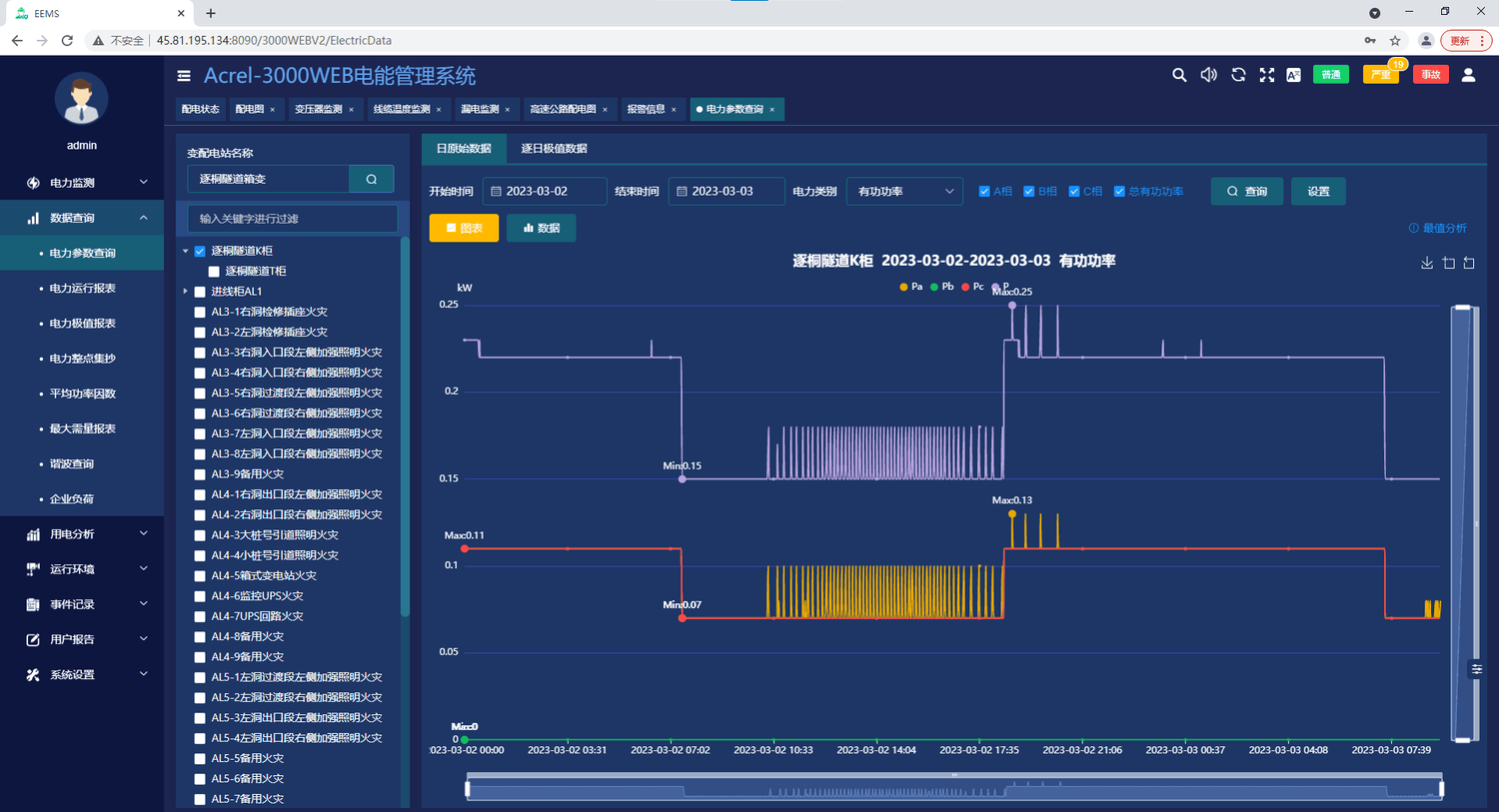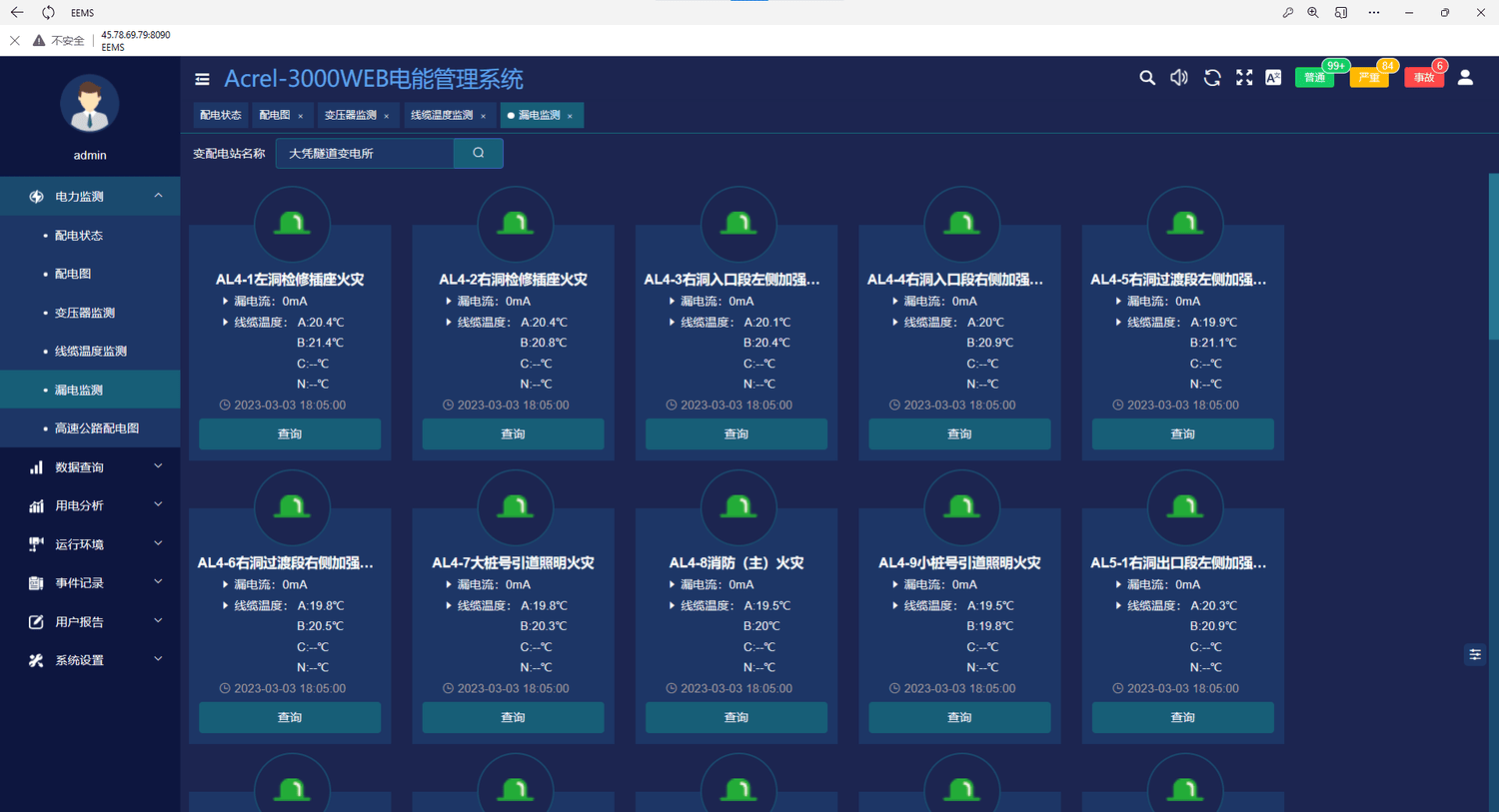 大憑高速共64個變電所其中隧道配電房有44個,收費站服務區配電房有20個,每個配電房均配置有電氣火災探測器,高壓綜保,低壓多功能表,無功補償監控裝置,溫控儀,UPS,EPS,柴發等設備。總計點位5300個左右。